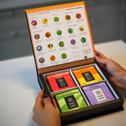 Variedad de TéUna caja con todos los blends de Inti Zen, de té blanco, negro, verde y tisanas sin teína. Diseñada para los amantes y conocedores del mundo del t...
